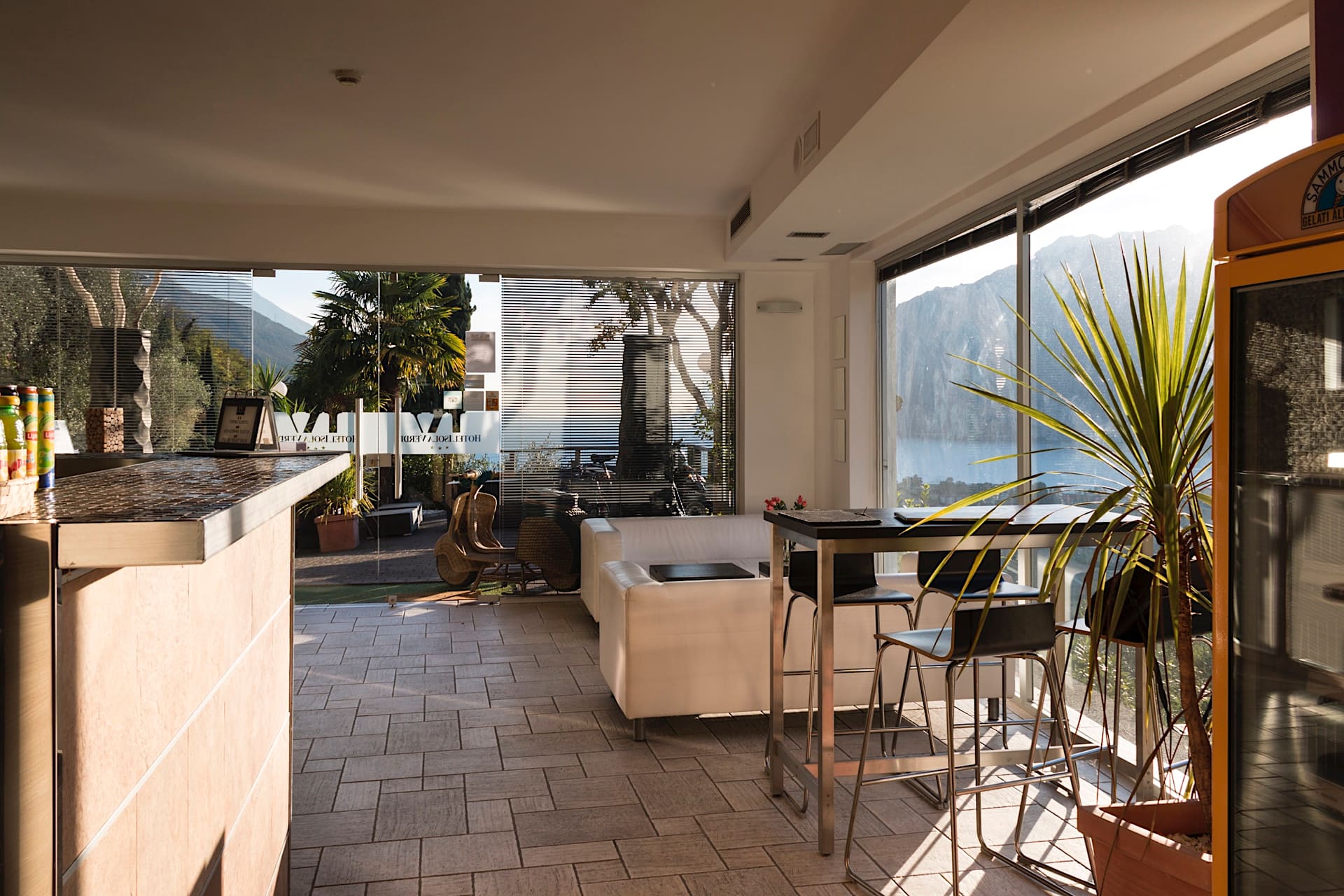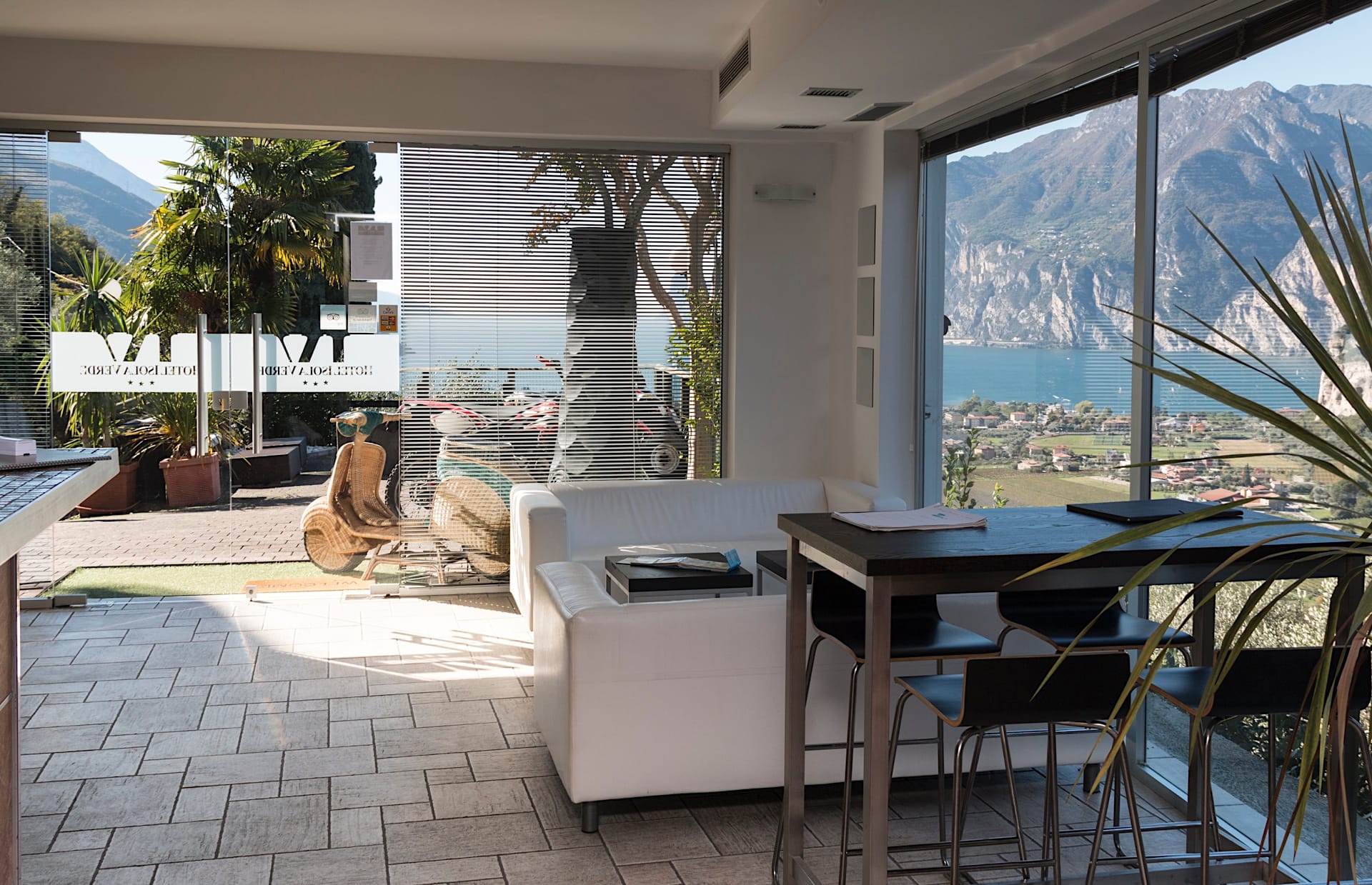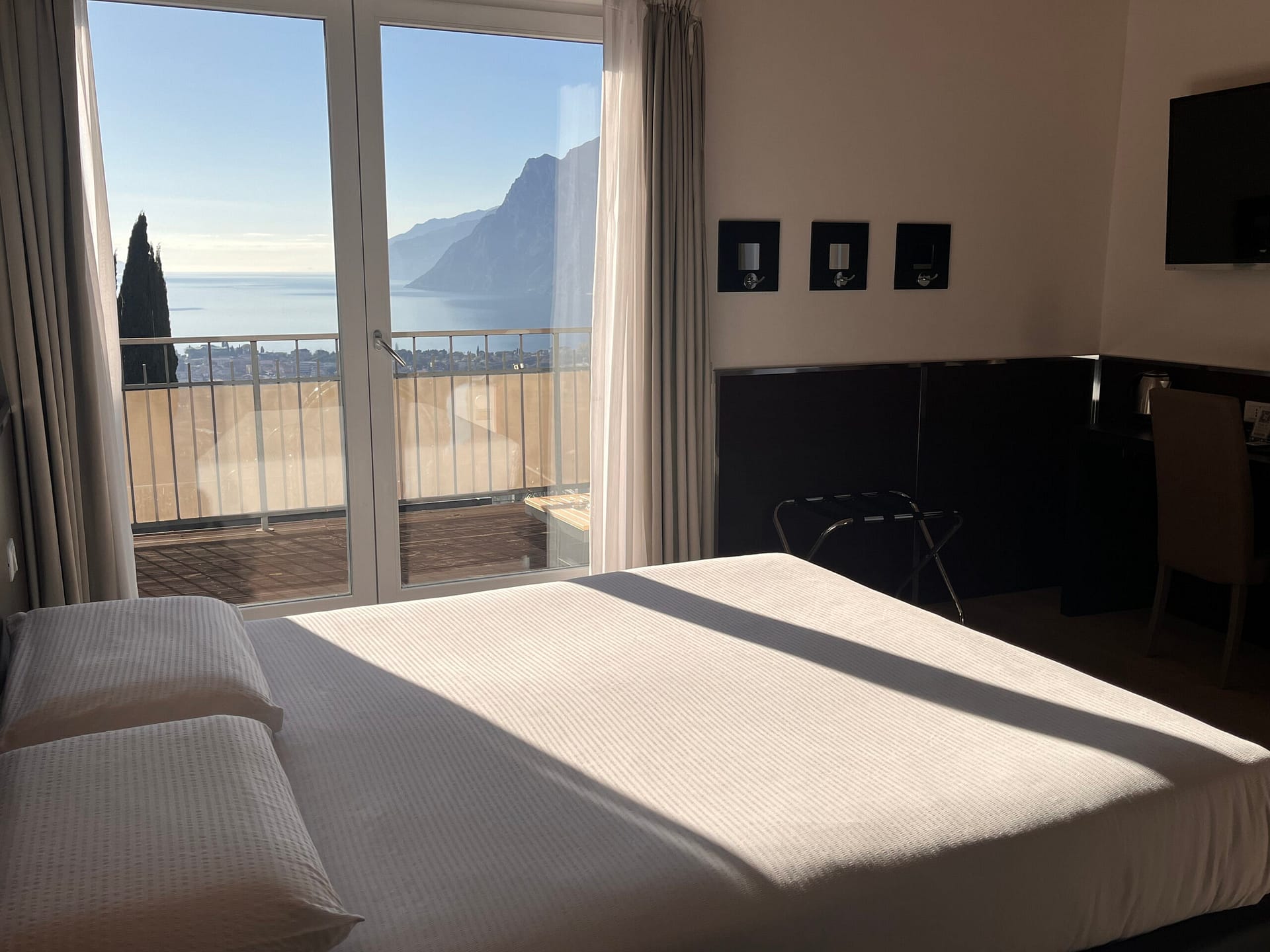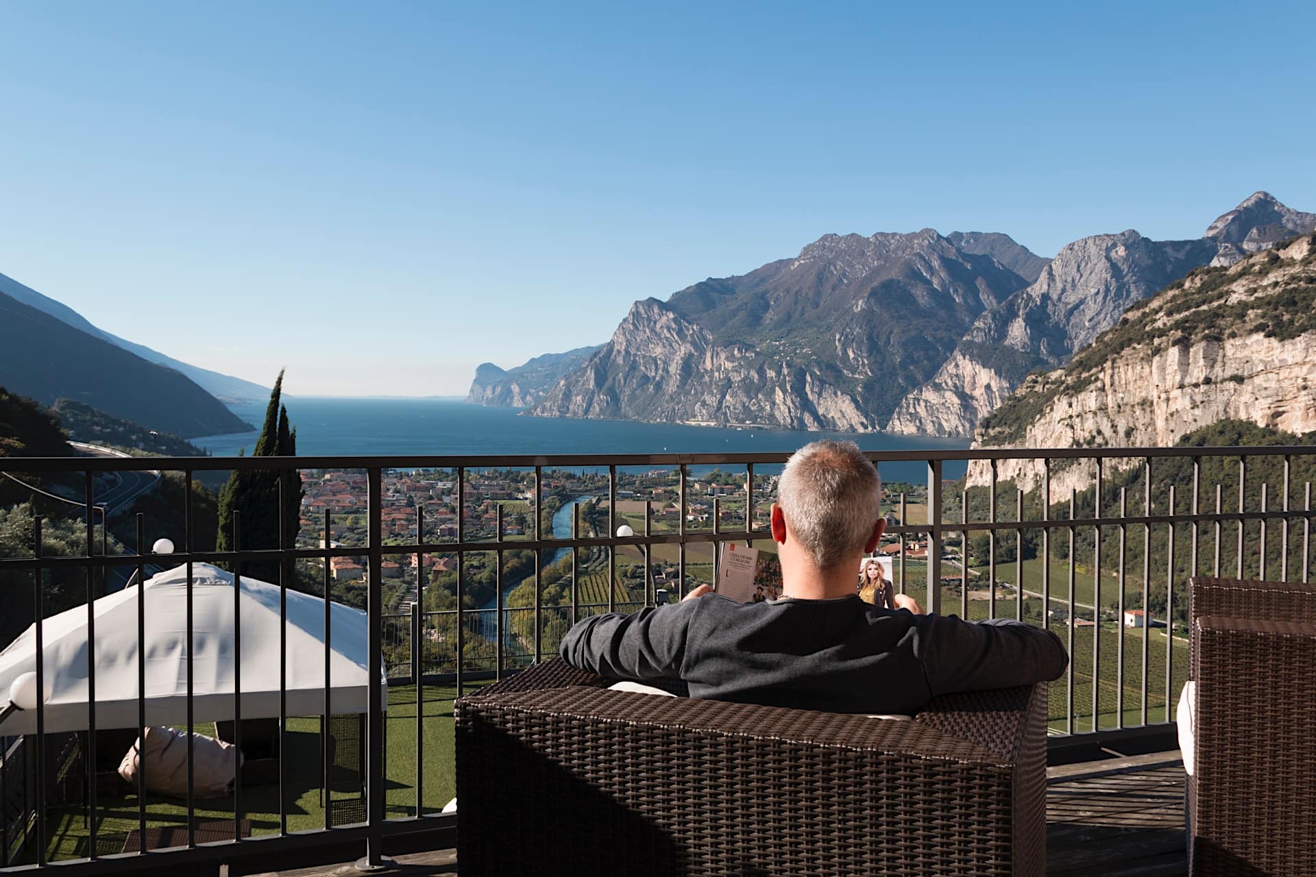 L’hotel sorge immerso nel verde, come una piccola isola tra lago e montagna, nel punto panoramico più bello di tutto l’Alto Garda. Una vista del lago magica, in ogni momento della giornata e in ogni stagione dell’anno, alla quale non ci si abitua mai.